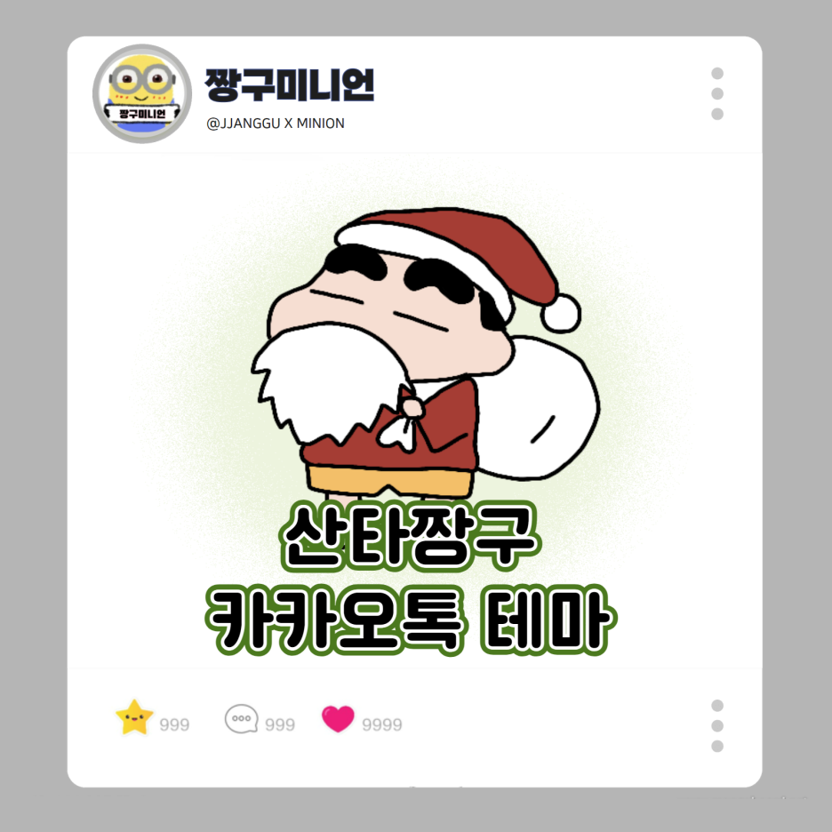 [AND/IOS] 산타짱구 안드로이드 아이폰 카톡테마(다운) 하단바 및 기본프사 오른쪽 : 안드로이드 캡쳐 / 왼쪽 : 아이폰 캡쳐 안드로이드 폰트 - 기본 / 아이폰 폰트 - 헤벌쭉 . 크리스마스가 곧 다가오고 있어요 !!!❤️💚 그런김에 산타 짱구 카톡테마를 만들었습니당 !! 좋아요와 댓글은 사랑입니다 💙 ✔️AND 다운 ✔️IOS 다운 *오류가 있으면 댓글로 알려주세요!!! ᴋᴀᴋᴀᴏ ᴛʜᴇᴍᴇ 2023.11.20